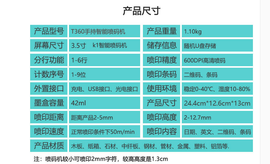 產品特點: 1.簡約風格,手持更方便。 2.智能噴碼,噴碼效果清晰。 3.噴碼機新升級,可直接編輯,多種點狀字。 4.大小面積均可噴碼。 5.4.3寸